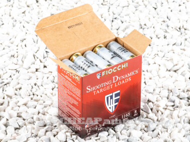 While 12 gauge ammunition is well known for personal and home defense, it is well established as a gaming firearm among Europe’s elite for the last two centuries. It remains a popular Olympic sport. And is still used as a non-Olympian sporting activity, both in the field, but more commonly in today’s modern world, at the local skeet range or shotgun club where the sport of clay shooting has experienced a notable resurgence in recent years. To that end, ammunition dedicated to the idea of disintegrating clays instead of humanely bringing down game has sponsored a new line of target type ammunition. This example, Fiocchi’s 2.75” Shooting Dynamics target loads, are loaded with 1 1/8 ounces of #8 shot (approximately 460 lead pellets that are about .09” in diameter) at about 1165 feet per second from the muzzle. It is an ideal round designed for maximum shot density without knocking the shooter back: after all, few people find an abusive sport that much fun.