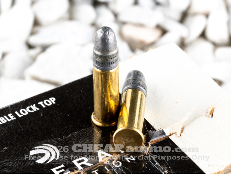 This 40 grain lead round nose (LRN) bullet by Federal has a muzzle velocity of 1200 feet per second with 128 foot pounds of energy. This is designed as a target round and for introducing new shooters to firearms safety and responsibility. It is also capable of dealing with small pests and, should it come to defense, beats chucking rocks any day of the week, hands down.