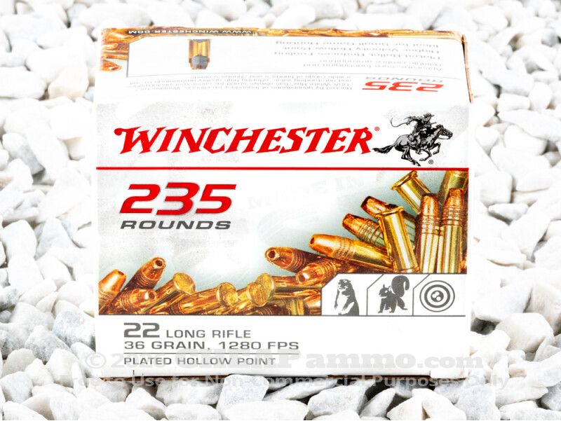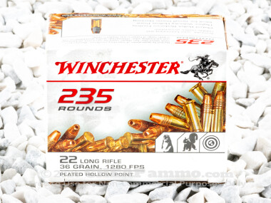 Winchester Copper-Plated Hollow-Point (CPHP) 36 Grain 22 Long Rifle (LR) Ammo - 235 Rounds