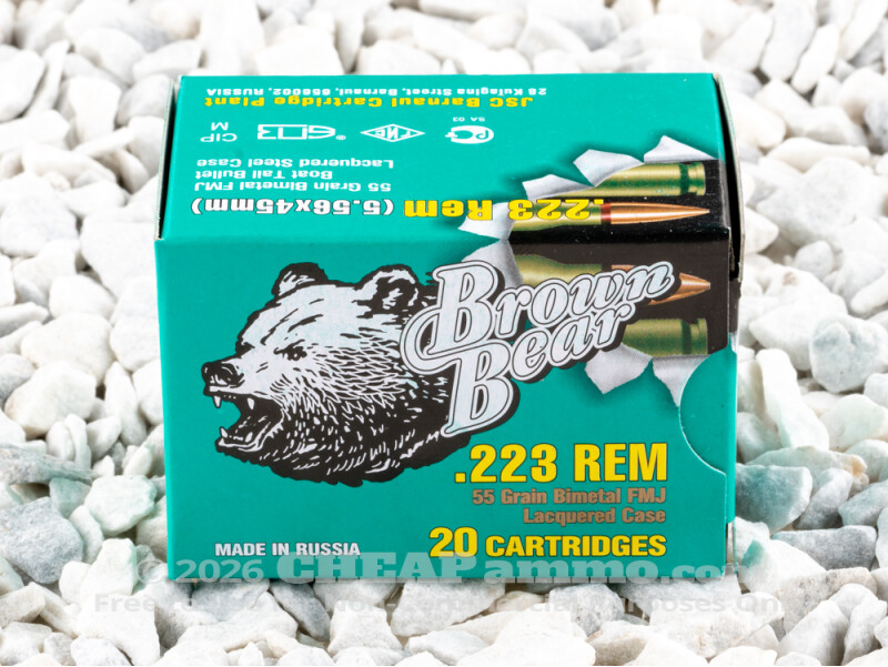 Brown Bear Full Metal Jacket (FMJ) 55 Grain 223 Remington Ammo - 500 Rounds