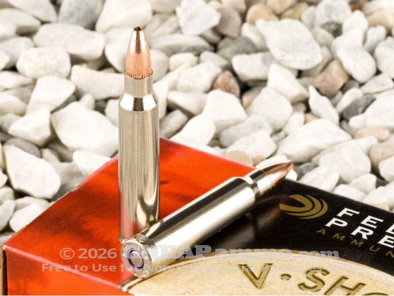 This .223 ammo is loaded with a 43 grain hollow point bullet that travels at a muzzle velocity of 3600 feet per second with 1237 foot pound of energy. While not capable of the impressive penetration one might associate with these numbers it still delivers devastating results on small to medium game as well as a flat shooting trajectory.
