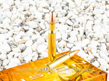 While world famous to many as an old, albeit venerable military round, the .30-06 Springfield ammo remains in active service to sportsmen all over the world, both for long range accuracy competitions and bringing down medium to large game at medium to long ranges. There is over a century of field data available for this cartridge and modern bullet making has only improved its performance in the field. Originally itself a redesign of the earlier .30-03 Springfield cartridge, the -06 continues to prove it still has something to offer a new generation of shooting enthusiasts. The 180 grain bullet by Federal has a muzzle velocity of 2700 feet per second with 2915 foot pounds of energy. It is an ideal round with a soft point for deer or elk hunting.