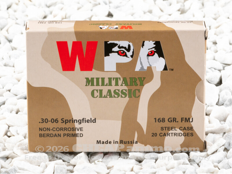 Wolf Military Classic Full Metal Jacket (FMJ) 168 Grain 30-06 Ammo - 500 Rounds