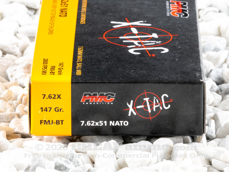 PMC X-Tac Full Metal Jacket Boat Tail (FMJ-BT) 147 Grain 308 Winchester (7.62X51) Ammo - 20 Rounds
