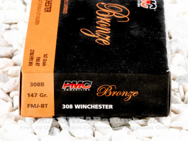 PMC Full Metal Jacket Boat Tail (FMJ-BT) 147 Grain 308 Winchester (7.62X51) Ammo - 20 Rounds