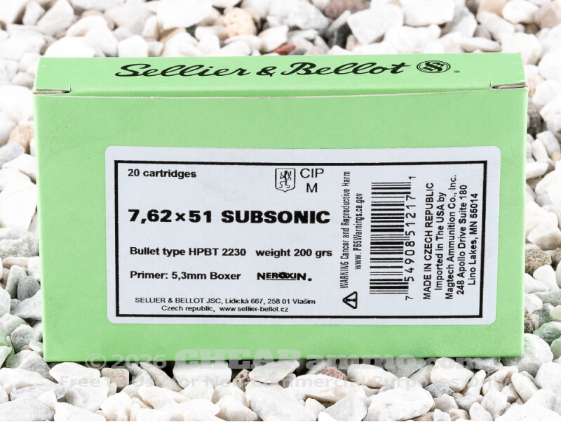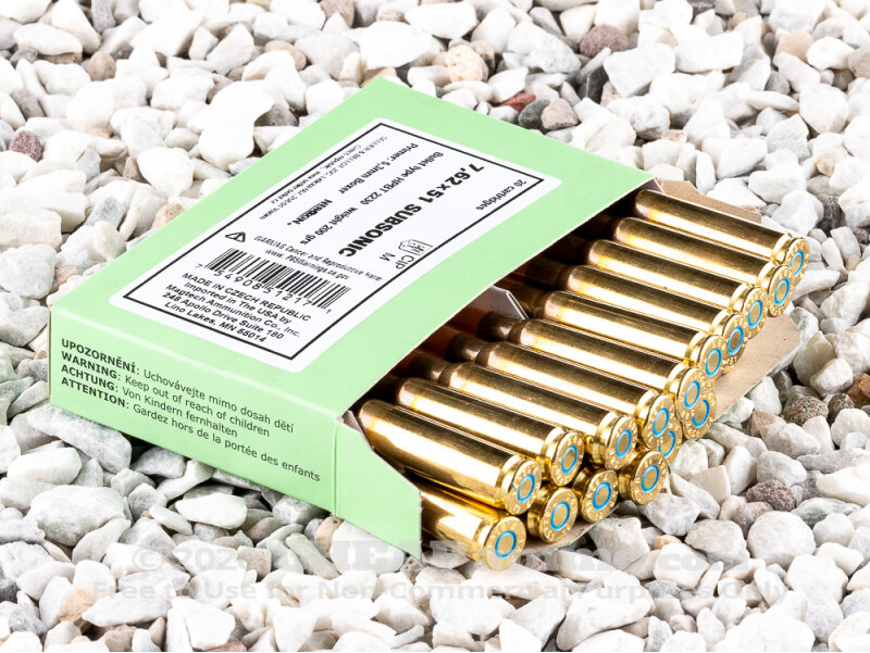 Sellier & Bellot Hollow-Point Boat Tail (HP-BT) 200 Grain Subsonic 308 Winchester (7.62X51) Ammo - 20 Rounds