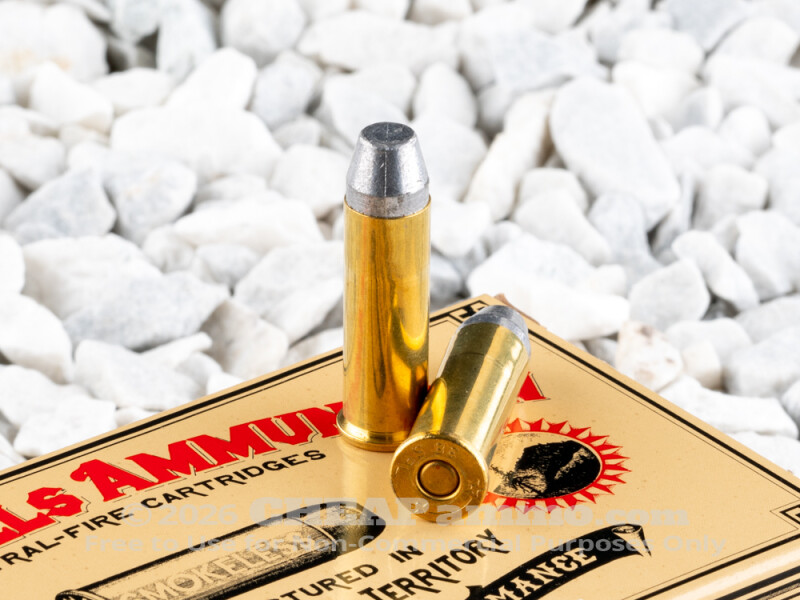 When Smith & Wesson’s .38 Special was introduced in 1898 it quickly became a popular choice in both private and law enforcement communities. It is also a favored round for personal protection in the home and while out and about. The cartridge is inherently easy shooting and accurate making it ideal for both service and competitions and is a very popular choice or modern alternative caliber for the popular cowboy action or single action shooting sports. The 158 grain conical lead nosed bullet by Black Hills has a muzzle velocity of 800 feet per second with 225 foot pounds of energy. The hard cast, flat nosed bullets are also ideal for use in cowboy action carbines as there is little risk of the tips setting off primers of the next rounds as a result of recoil.