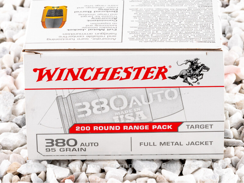 Winchester USA Full Metal Jacket (FMJ) 95 Grain 380 Auto (ACP) Ammo - 200 Rounds