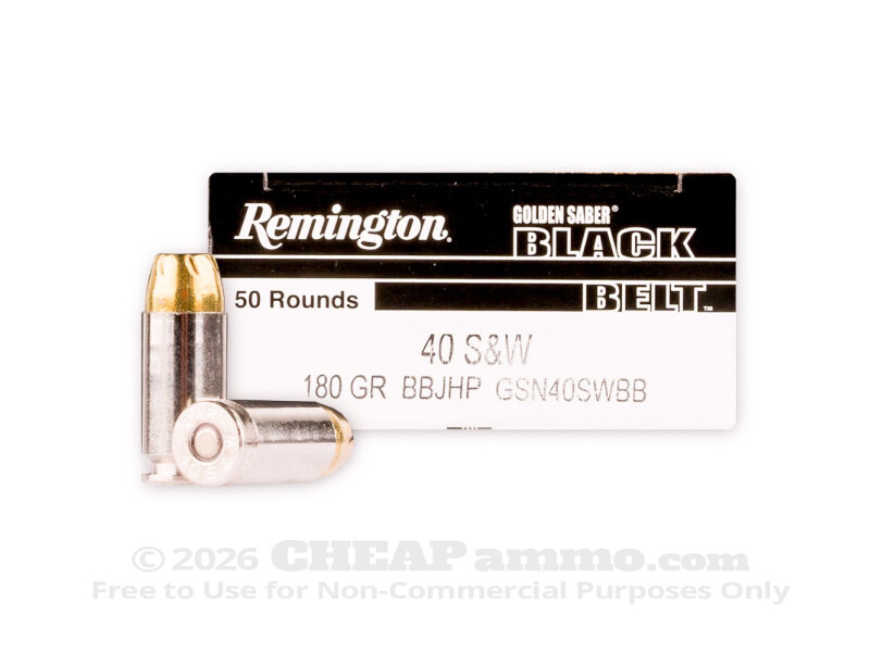 Developed almost as a consolation round from the powerful 10mm Auto, the .40 Smith & Wesson offers the same bullet out of a shortened case for more manageable recoil, which is important in defensive as well as competitive situations. Still prized as one of the three most popular American sidearm calibers (which spot in the top three is subjective), the 40 shows no signs of being abandoned any time soon. Remington’s Black Belt, jacketed hollow point bullet is capable of leaving the muzzle at 1015 feet per second with 412 foot pounds of energy. Like the original Golden Saber line by Remington, this improved bullet type is a personal defense round, through and through designed for maximum transferal of ballistic energy into the target for maximum results.