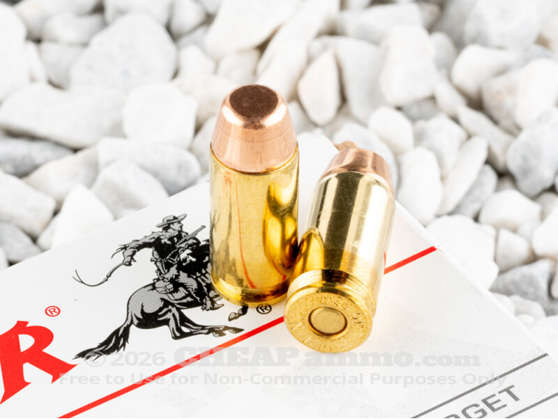 The .40 S&W, or "10 Short" was introduced as the premium self defense round in 1990 that did not have the ballistic deficiencies of the then in service 9mm Luger or the excessive recoil of the 10mm Auto. While still snappy when compared to 9mm and .45acp, the .40 has been embraced by both professional and recreational shooters for the versatility of various loads. Many law enforcement agencies adopted the .40 for its potency, and while quite a few have returned to redesigned 9mm in recent years, individual officers prefer the surety inherent in the .40 S&W. Winchester's 165 grain full metal jacket bullet has a muzzle velocity of 1060 feet per second with 412 foot pounds of energy. For those who use a .40 for personal security, this is a good round to simulate your carry ammo while training without the extra cost of premium defense ammunition.