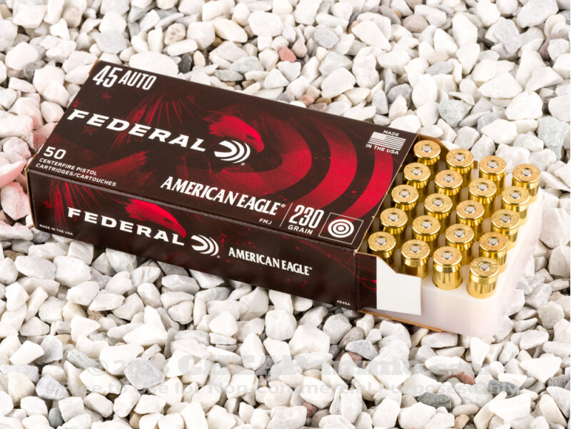 The full metal jacket (FMJ) .45 ACP ammo by Federal has a muzzle velocity of 890 feet per second with 400 foot pounds of energy. It is ideal for target shooting and training, and although not ideal, it is also a viable defense option where hollow point ammunition is prohibited and there are concerns of over-penetration.