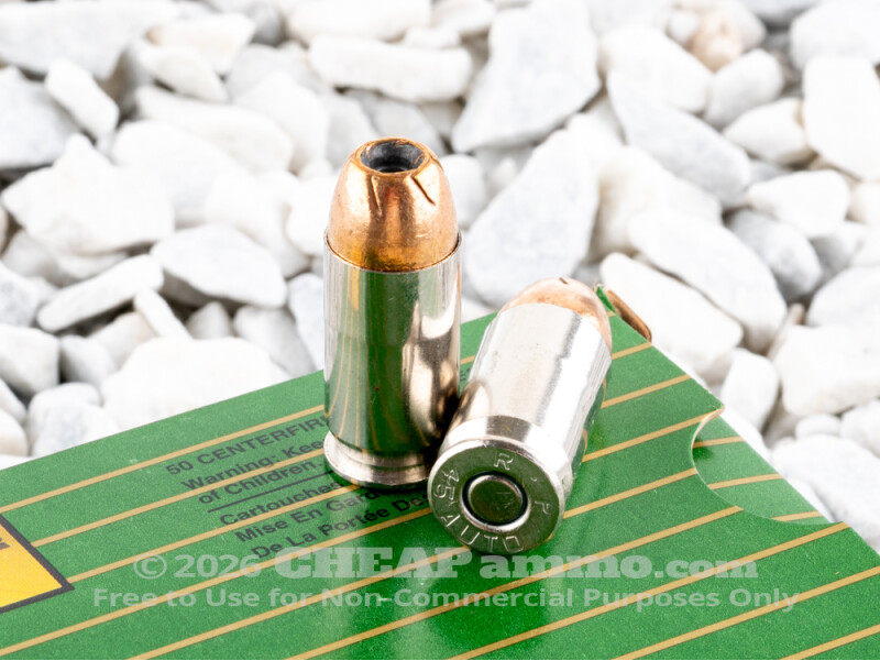 .45 Automatic Colt Pistol ammunition is very popular among personal defense shooters for its inherent accuracy and stopping power: in that it tends to stop when it hits something, making it ideal for home and close quarters defense. Abandoned by the standard issue US military for logistical compliance with allies, the cartridge remains in use with special forces and police for its delivery of ballistic energy to the target and more palpable results. Small wonder many private carriers of concealed weapons still choose it also. Remington’s Golden Saber, 230 grain jacketed hollow point bullet fires at about 875 feet per second with 391 foot pounds of energy. This is a popular personal defense round that is also standard issue to law enforcement agencies that accept use of the .45 ACP.