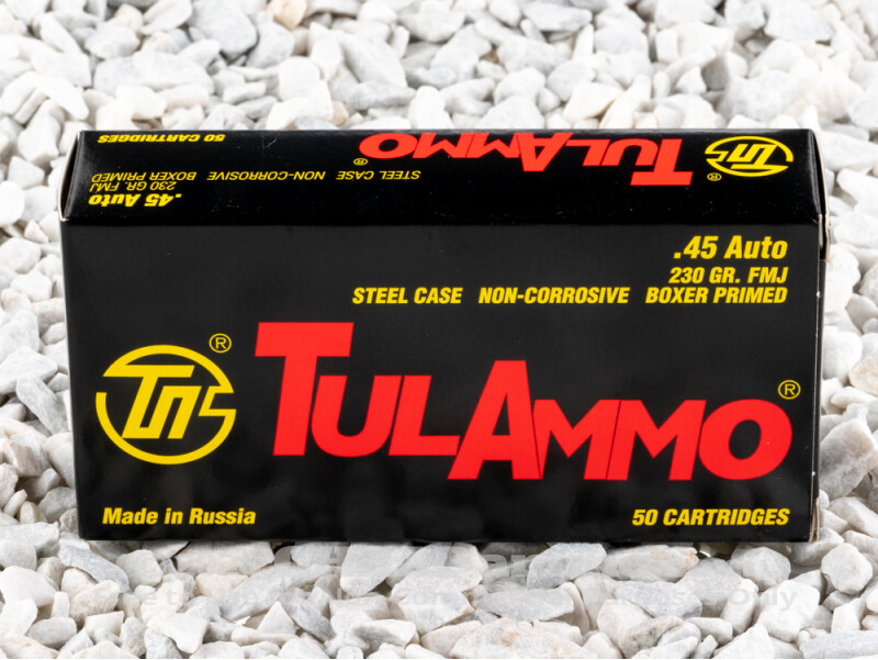 Tula Cartridge Works is closely associated with the Tula arsenal in Moscow, Russia. The Cartridge Works produces ammunition for both the Russian military and for commercial export. Due to the steel cases, it can be readily dismissed as military surplus, but the .45 ACP by Tula is boxer primed, so enterprising reloaders can recycle these cases for further value.