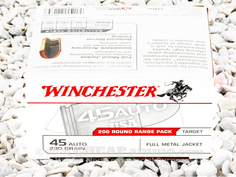 Winchester Full Metal Jacket (FMJ) 230 Grain 45 ACP (Auto) Ammo - 200 Rounds