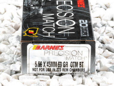 Barnes Precision Match Open Tip Match 69 Grain 5.56x45mm Ammo - 20 Rounds
