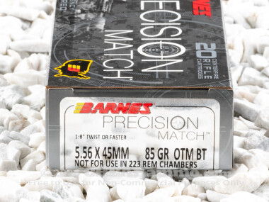 Barnes Precision Match Open Tip Match 85 Grain 5.56x45mm Ammo - 20 Rounds