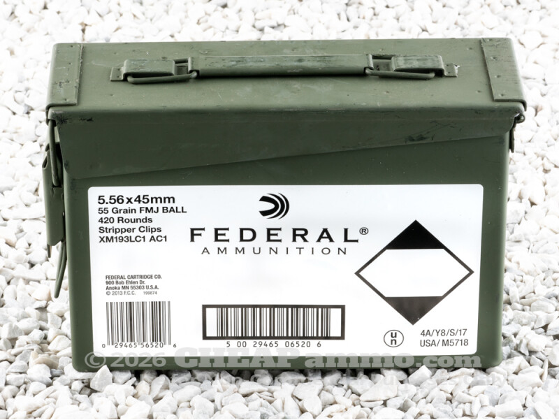 Federal Full Metal Jacket Boat Tail (FMJ-BT) 55 Grain 5.56x45mm Ammo - 420 Rounds