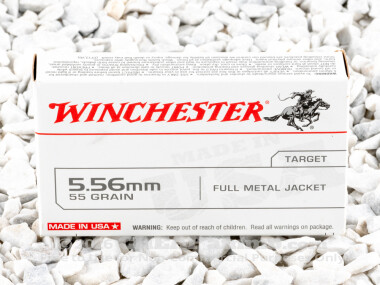An awesome bulk 5.56 ammo choice for training or stockpiling. This brass-cased ammo is loaded with a 55 grain full metal jacketed round by Winchester. Expect a muzzle velocity at up to 3270 ft per sec with over 1300 ft lbs of energy. This is ideal for target shooting, range training and competitive shooting, especially in military style matches such as by the DCM/CMP. This 1000 round case is an ideal start up for any weekend.
