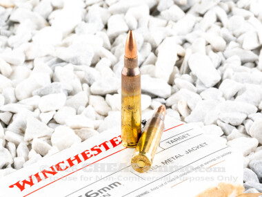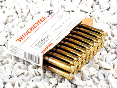 Adopted by the twenty-nine member nations of NATO and one of the most popular civilian rifle calibers, 5.56x45 ammo is entering a sixth decade of official and recreational use. Globally favored for its cost to benefit ratio, the caliber uses almost a minimum of components from brass for casing to bullet weights and powder to deliver a hypersonic round that can be very effective at close to medium ranges. Though still selected for small game hunting, the 55 grain FMJ round is predominantly a target and civil defense option. This one by Winchester leaves the muzzle at 3270 feet per second and is moved along by 1306 foot pounds of energy. Ideal for competitive matches, it delivers reliable performance out to 300 yards and in precision rifles is often pushed out to 600 yards or more.