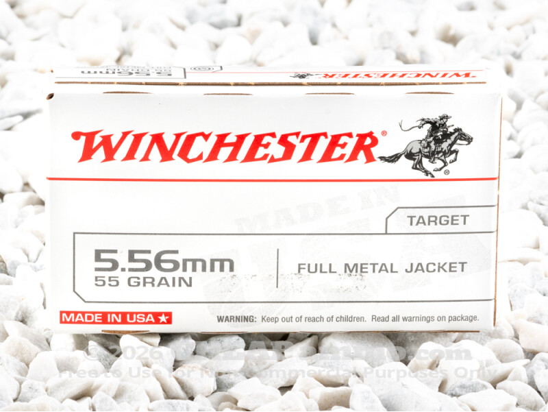 Winchester USA Full Metal Jacket (FMJ) 55 Grain 5.56x45mm Ammo - 180 Rounds