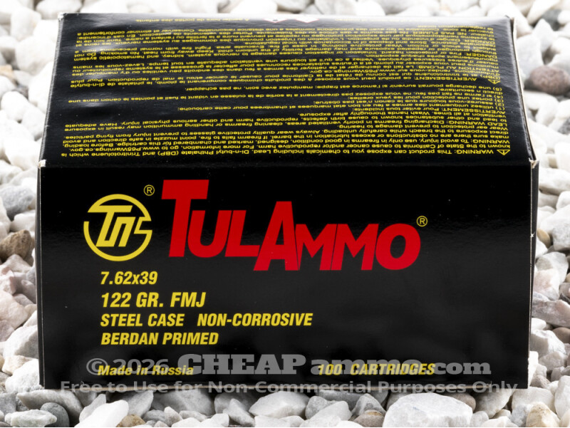 Tula Cartridge Works Full Metal Jacket (FMJ) 122 Grain 7.62X39 Ammo - 100 Rounds