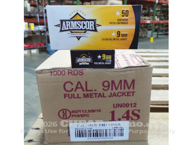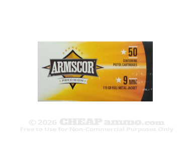 Armscor Full Metal Jacket (FMJ) 115 Grain 9mm Luger (9x19) Ammo - 50 Rounds