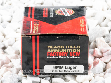 Black Hills Ammunition Full Metal Jacket (FMJ) 115 Grain 9mm Luger (9x19) Ammo - 20 Rounds