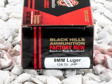Black Hills Ammunition Jacketed Hollow-Point (JHP) 124 Grain 9mm Luger (9x19) Ammo - 20 Rounds