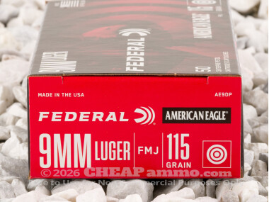 Federal Full Metal Jacket (FMJ) 115 Grain 9mm Luger (9x19) Ammo - 50 Rounds