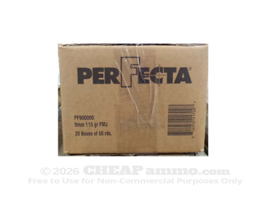 Fiocchi Perfecta - Full Metal Jacket - 115 Grain 9mm Luger (9X19) Ammo - 1000 Rounds