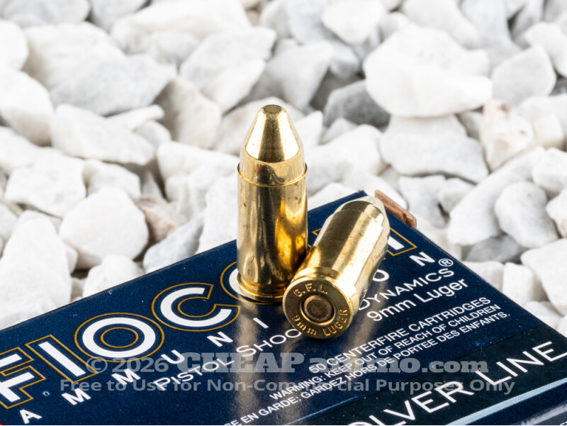 Fiocchi Full Metal Jacket (FMJ) 124 Grain 9mm Luger (9x19) Ammo - 50 Rounds