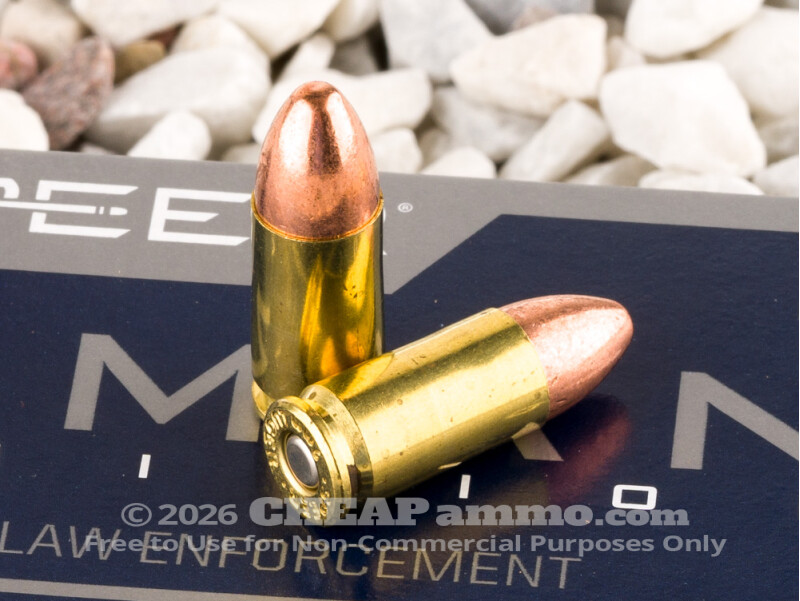 Despite being sometimes dismissed as a "puny" round – typically by die hard .45acp shooters – the 9x19mm round has been around for a century and shows no sign of being fully dismissed anytime in the next century. In fact, continually developing bullet technology has brought the 9 back to widespread law enforcement usage in recent years due to it striking the perfect balance between control and manageability with effective results downrange in either training or real world defensive scenarios. The 115gr fmj bullet by Speer exits the muzzle at 1200 feet per second with 368 ft lbs of energy. As such, this is a training and target shooting round, not suited terribly well for home defense, but perfect for keeping your skills honed and ready for competitions or anything else.