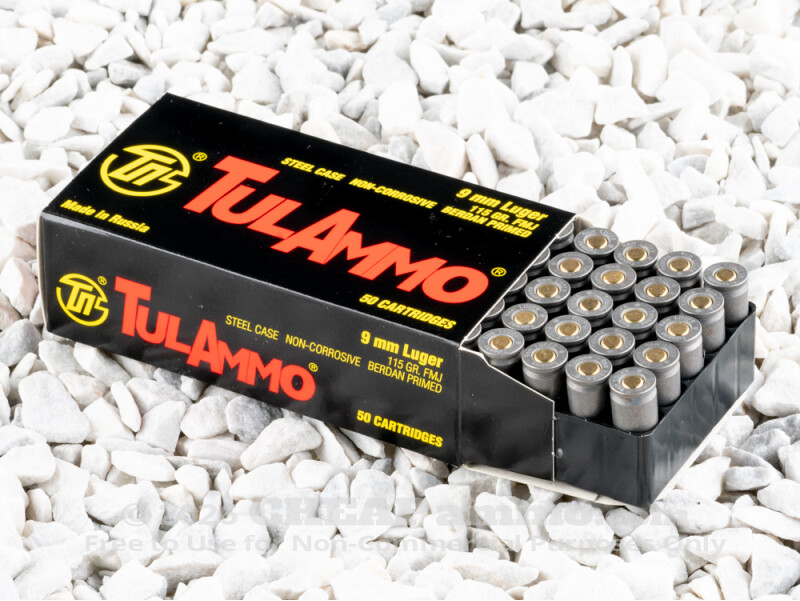 Tula Cartridge Works Full Metal Jacket (FMJ) 115 Grain 9mm Luger (9x19) Ammo - 50 Rounds