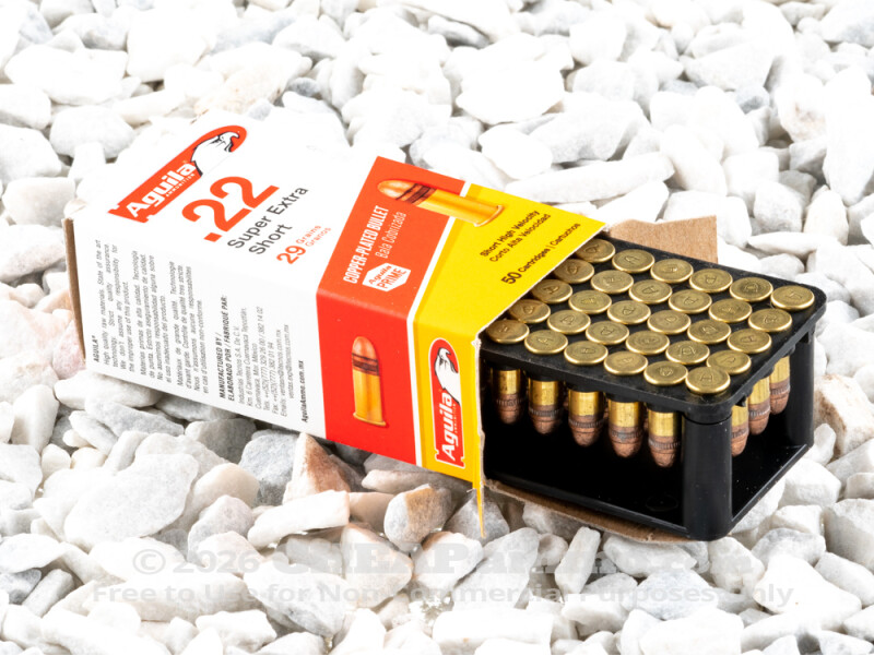 Aguila’s 29 grain copper plated bullet has a muzzle velocity of 1095 feet per second with 77 foot pounds of energy. It is ideal for target shooting, especially in competitions and the copper plating leaves less fouling behind when used in sound suppressors.