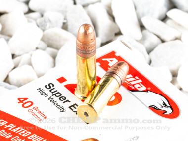 Hands down, there is no other more common round in the world than .22 Long Rifle, it is the most produces and fired cartridge anywhere. With all of this experience and exposure, real world research and use allows the quality manufacturers to rise above the others and the .22 market is the perfect litmus test: rimfires are actually the most difficult to manufacture in the process of getting the primer compound into the rim’s total circumference. This is why misfires are more common than in centerfire ammunition. This is why quality rimfire manufacturers are the ones trusted to not leave the shooter hanging in an important moment of a competition. Aguila is one of those manufacturers. Their copper plated 40 grain bullet has a muzzle velocity of 1255 feet per second and 140 foot pounds of energy. This is good for use in longer range competitions and the heavier and harder hitting bullet makes it a good choice for varmint control in areas that restrict hollow points. Further, the copper plating has reduced fouling and is favored for use with sound suppressors. All in all a good multi-purpose double deuce.