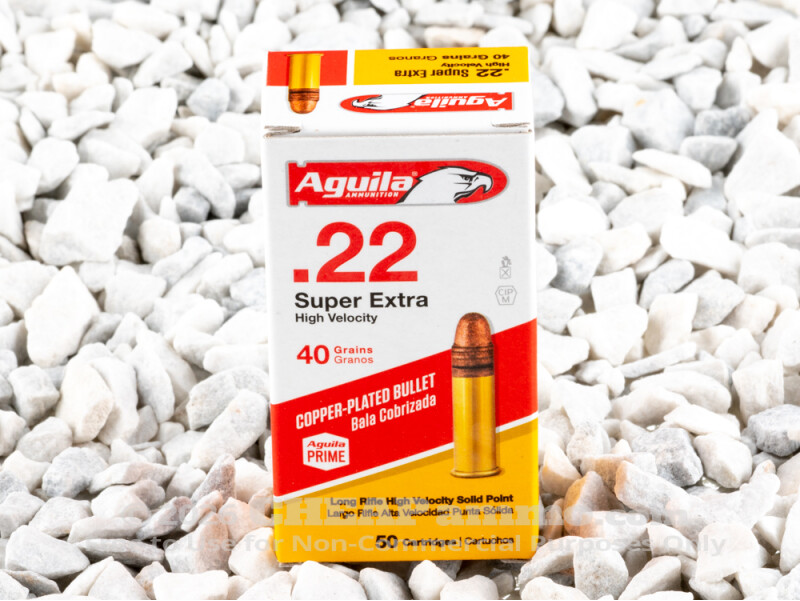 .22 Long Rifle ammunition maintains its pre-eminence as the most utilitarian caliber in the US if not the world. It is what every shooter doubtless learned on and what many continue to use for sport, leisure and pest control. This is despite the fact that rimfires have the highest misfire ratio of any modern caliber due to the difficulty of seating the primer compound completely around the rim’s circumference. Consequently, brands that have a reputation for complete seating are quickly recognized and the first chosen for professional competitions where time is an important factor. Aguila is one such company. Their 40 grain copper plated lead round nosed bullet exits the muzzle at 1255 feet per second with 140 foot pounds of energy. This is a comparatively hard hitting .22 good for distance competitions and varmint hunting where hollow points are prohibited. The copper plating also produces less fouling over long stages of competition.