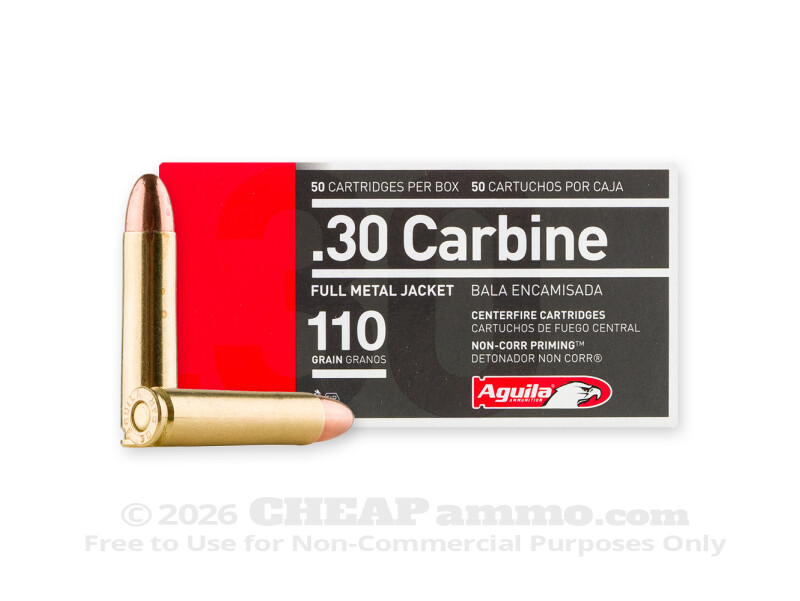 Aguila - Full Metal Jacket - 110 Grain 30 Carbine Ammo - 50 Rounds