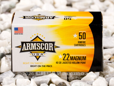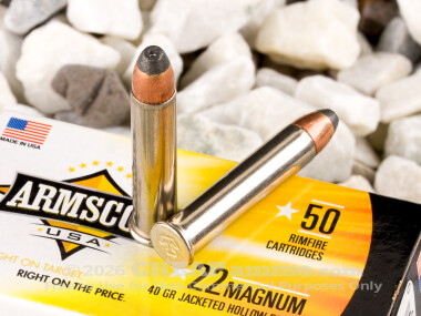 Armscor - Jacketed Hollow Point - 40 Grain 22 Magnum Ammo - 500 Rounds