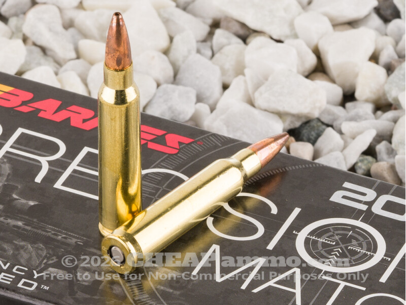 Why is this Precision Match series 5.56x45 ammo by Barnes so darn accurate? Because it is loaded with none other than the Utahan manufacturer’s Match Burner projectile! Despite what its appearance might suggest, the Match Burner is not engineered for hunting applications. But if you want a non-expanding bullet that dominates at long-range shooting, the open tip match boat tail won’t disappoint!