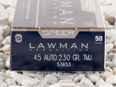 This cartridge’s 230 grain bullet and 830 fps muzzle velocity (5” test barrel) both hit the sweet spot as far as standard .45 cal target ammo is concerned. The total metal jacket does everything that the full metal jacket does – but because the TMJ’s core is completely sealed in by its jacket, it does not produce aerosolized lead during ignition. Great if you’re firing at an indoor range or just want to keep your pistol’s barrel cleaner!