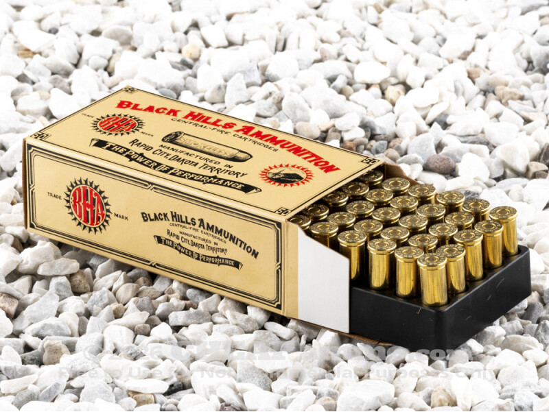 Black Hills Ammunition of South Dakota has made a name for itself as a quality provider for single action shooting enthusiasts. Their vintage branding on boxes harkens back to yesteryear and the Old West, while the quality manufacture is nothing but modern in function and clean burning powders. Boxer primed cases bring reloadable value to collector and competitive shooters.