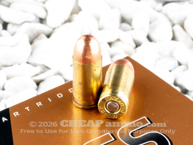 This cartridge is loaded with a 95 grain full metal jacket projectile: lead core, copper-alloy jacket, and zero steel. The nonmagnetic projectile achieves a velocity of 945 fps upon clearing a pistol’s 3.75” barrel, so you should expect a slightly lower muzzle velocity out of a Glock 42’s 3.25” barrel.