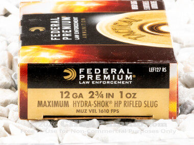 Federal Premium’s police-grade 12 Gauge ammunition solves this very problem. This shell’s 1 ounce slug and cooler 1,300 fps muzzle velocity (out of a 30” barrel) won’t hit you with as much recoil as other, more powerful shells. Even so, it’s not a weakling by any standard. The shell hits its target with over 1,000 ft lbs of energy at 50 yards, which is way, way more than what’s needed to instantly neutralize a threat.