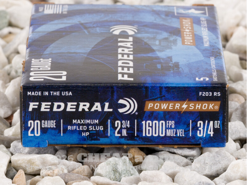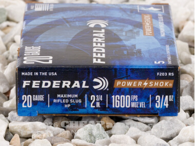 Your 20 Gauge shotgun isn’t just good at laying out small game. It’s also a capable deer slayer so long as it’s running the right ammo. And what do you know – we’ve got the right ammo for you in stock right here. It’s Federal’s Power-Shok series 20 Gauge hollow point rifled slug ammo!