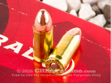 This cartridge features a 115 grain full metal jacket projectile. It’s the lightest bullet you’ll find in a 9mm target load, and not coincidentally the cheapest 0.355” diameter bullet Federal manufactures. The bullet does not have a nose cavity or any other features that enable terminal expansion – another reason for its cost-effective design. The FMJ’s lead core and copper-alloy jacket leave it completely incapable of attracting a magnet. And because its muzzle velocity is 1,125 fps (out of a 4” barrel), the FMJ also generates relatively recoil – perfect if you’re trying to reduce the muzzle flip that complicates rapid, accurate fire (or you’re just averse to recoil).