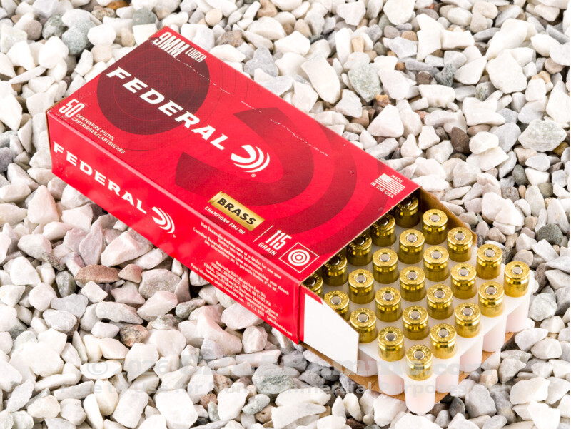 Federal’s Champion series ammunition is available with aluminum cases, but this is the brass-cased variety. The new production noncorrosive Boxer-primed brass cases feed smooth, promote clean performance, and are reloadable once they are empty. Made in Minnesota, where people avoid frostbite by staying indoors and making high-quality 9mm ammo!