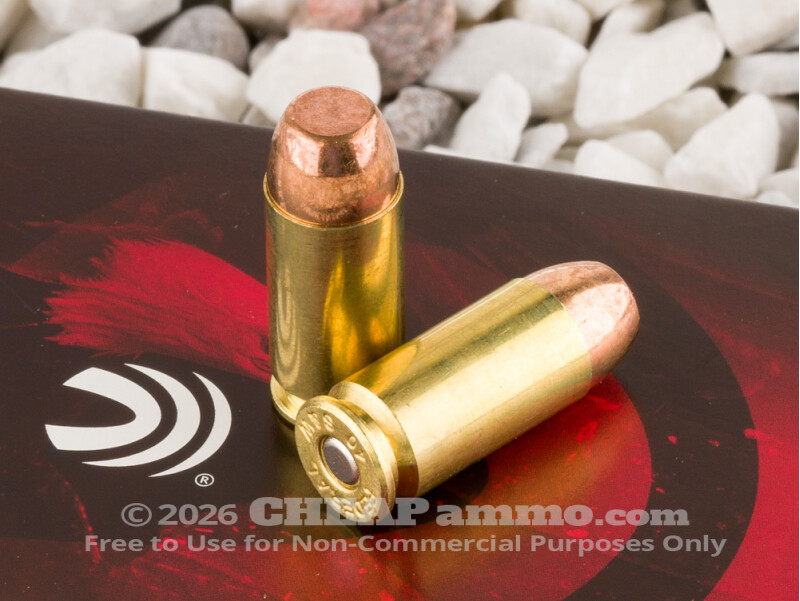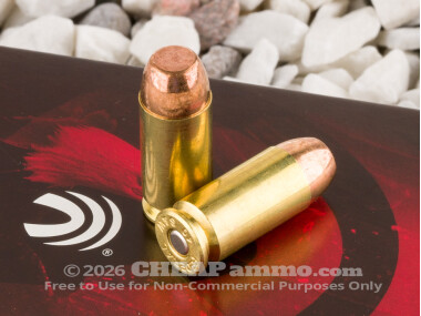 This round is loaded with a 180 grain full metal jacket – flat nose, like virtually all 40 S&W FMJs have. The bullet’s non-steel jacket won’t attract a magnet, so no worries there. Expect a nice consistent subsonic 1,000 fps muzzle velocity if your pistol has a 4” barrel, with -11.6” drop at 100 yards while you’re firing to 25 yards.