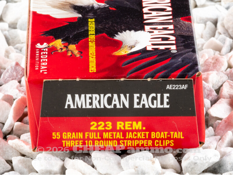 Federal - Full Metal Jacket Boat Tail - 55 Grain 223 Remington Ammo - 30 Rounds