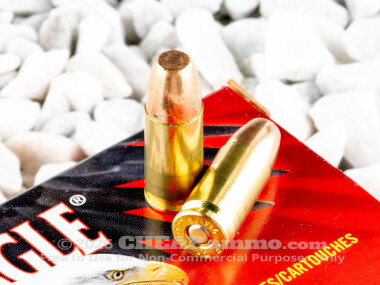 This 9mm cartridge by Federal is perfectly suited for extended visits to the range. Its 147 grain projectile, which is the heaviest of the bullet weights most commonly given to its caliber, sports a full metal jacket. It will keep your pistol’s bore from rapidly fouling with the kind of lead residue that would eat away at your accuracy and assures smooth feeding in a semi-automatic as well. The bullet’s flat nose profile is excellent for shooting a paper target, as it will punch a clean and easily identifiable hole through one, giving you instant feedback on your performance and removing any ambiguity from the scoring process.
