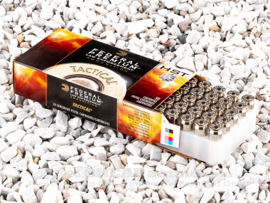 This 45 ACP +P cartridge from Federal’s Tactical line hasn’t got just any jacketed hollow point -- it’s the HST, which takes the classic self-defense bullet design to a whole new level. The 230 grain bullet’s cannelure enables it to retain a massive portion of its weight as it penetrates an obstinate urban barrier -- even rugged safety glass costs it only seven percent of its weight. As the HST penetrates, its nose cavity and internal skives facilitate massive expansion, guaranteeing that your target receives the deep, wide wound channel that forces it down fast. The HST consistently burrows to over one foot deep in bare ballistic gelatin!